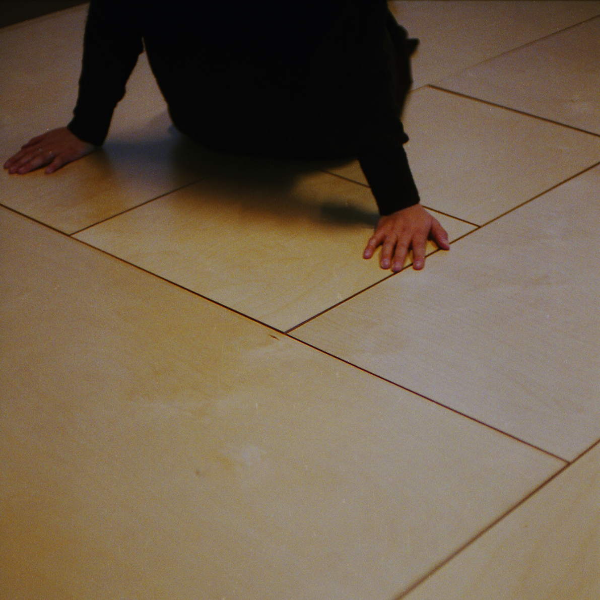 Platform for a film is a modular scenography piece developed for the film ‘taste of tangerine’ by Eva Giolo. Slightly elevated from the ground, the platform is accessible by a few steps which are deliberately detached from the platform itself. The subtle floor drawing of 900×1800mm plywood panels and its wooden scent reminisces entering a Japanese house and the smell of woven ‘tatami’. A screen is attached on one side of the structure, imitating the size of the panels. On it, the image of the film is projected modestly, communicating its wish for the viewer to sit directly on the floor through its rather low position.