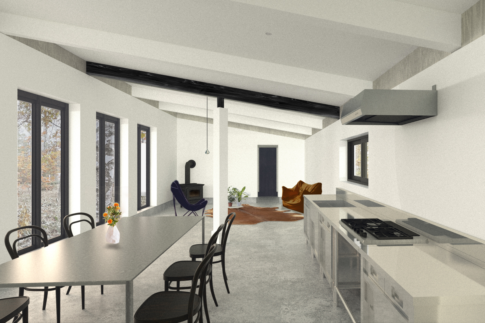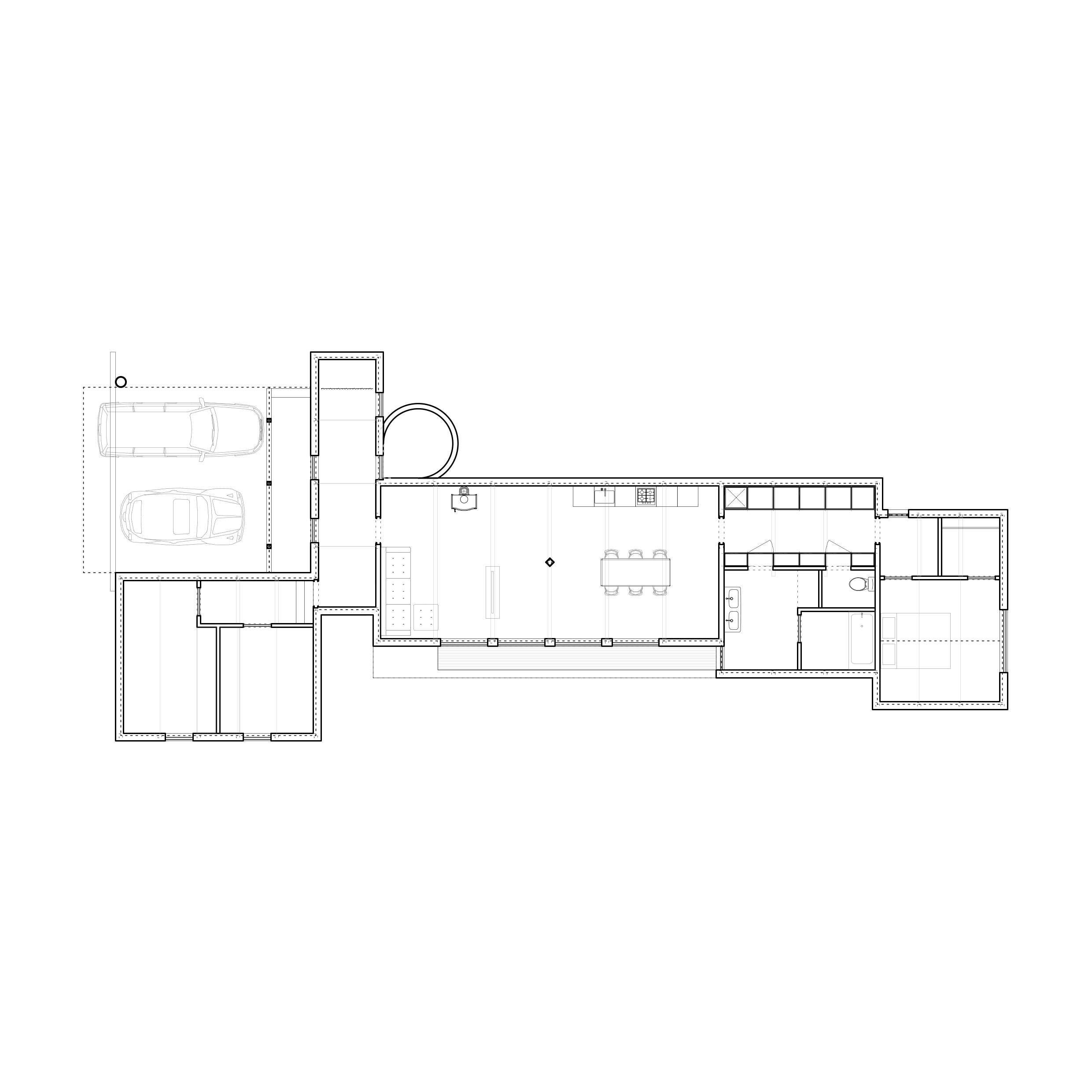 The project attempts to suggest an alternative attitude within the confines of planning a single house. Instead of planning a house with a clear geometric boundary, the house is designed as a composition of a number of volumes. Each volume is tailored to meet the needs of a specific function while sharing subtle details that continue throughout the house. The volumes are connected in a shifting manner, elevating the transitional experience between spaces. And from the exterior, the house lightly resembles a cluster of buildings in a village, advocating an attitude of living together rather than neglecting each other to the residents of the area.