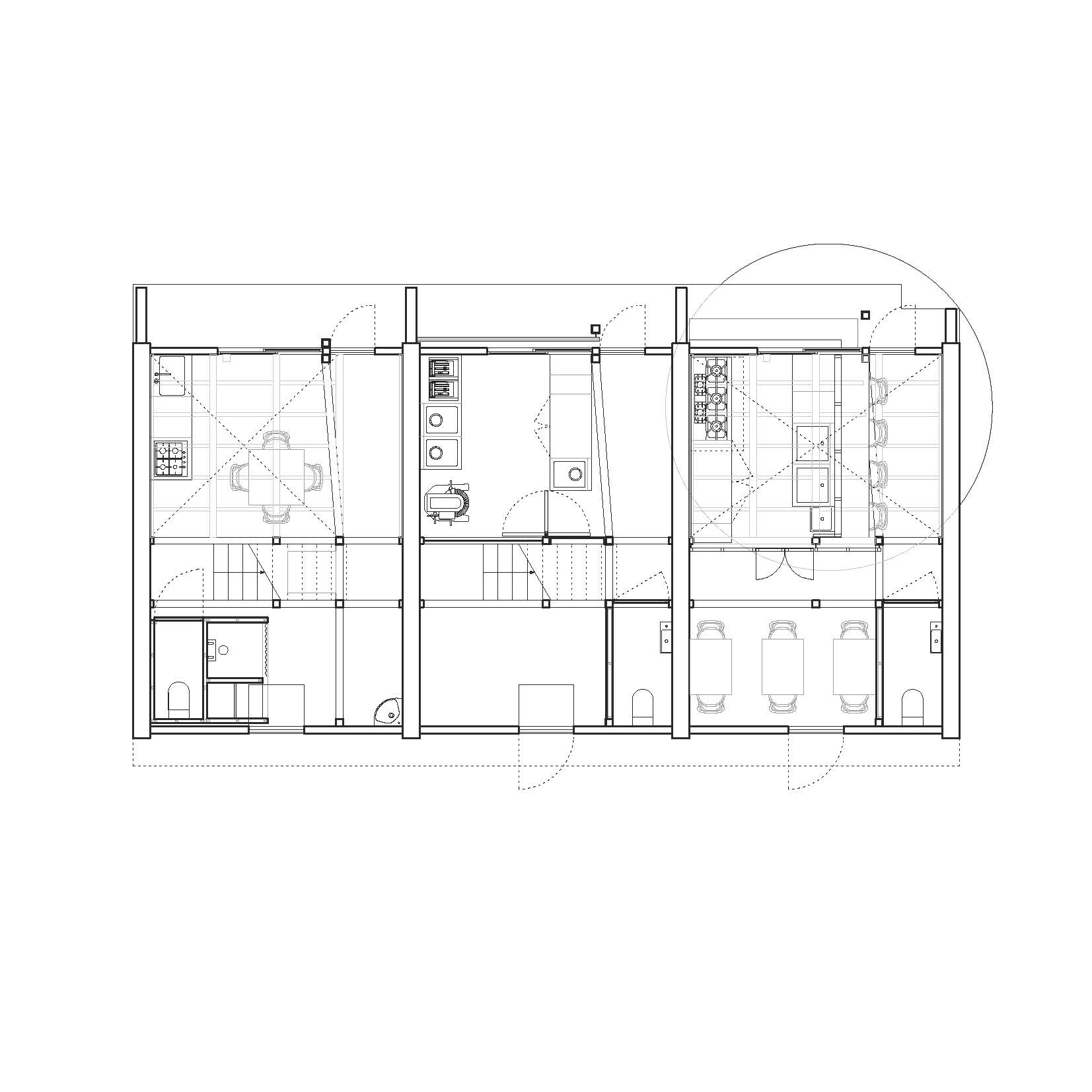 The existing building of Hasami Complex was formerly used as a set of three duplex apartments. Residents would enter through the smaller alley into a ground-floor living space, followed by a backyard and bedrooms on the upper floor. The aim of the project was to convert these three units into a set of public programs, as a restaurant, a pastry shop and a guest house.